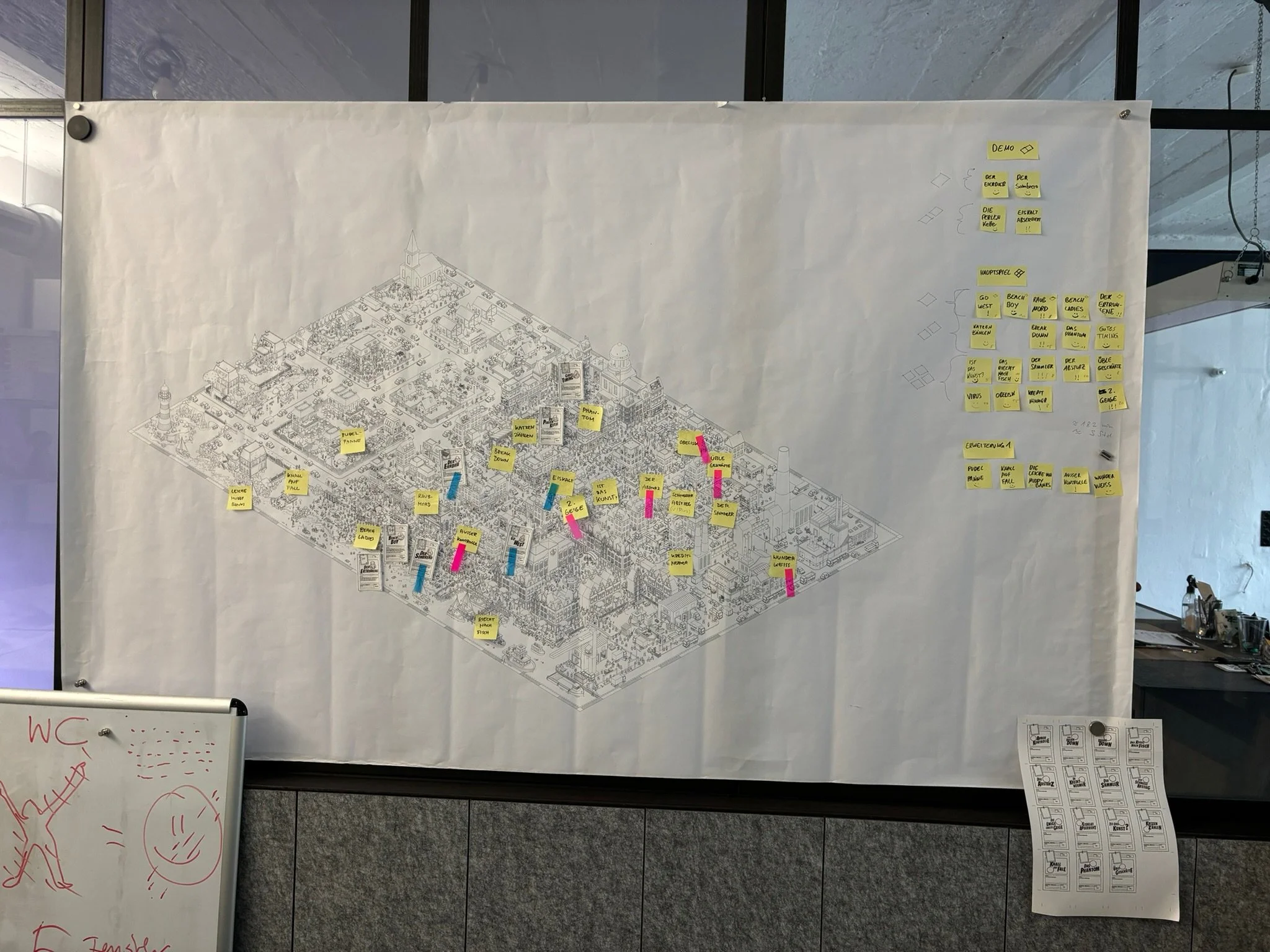 The very first idea we developed was in 2015. We wanted to make a puzzle game where you have to use your smartphone camera zoom like a magnifier to find tiny details in a huge illustration. Details so tiny that you can't even see them with your bare eyes. We were fascinated by the new possibilities in print and camera technology. Soon, we got the idea that the "huge illustration with plenty of details" had to be a city, and the "puzzles based on tiny details" required a detective theme.