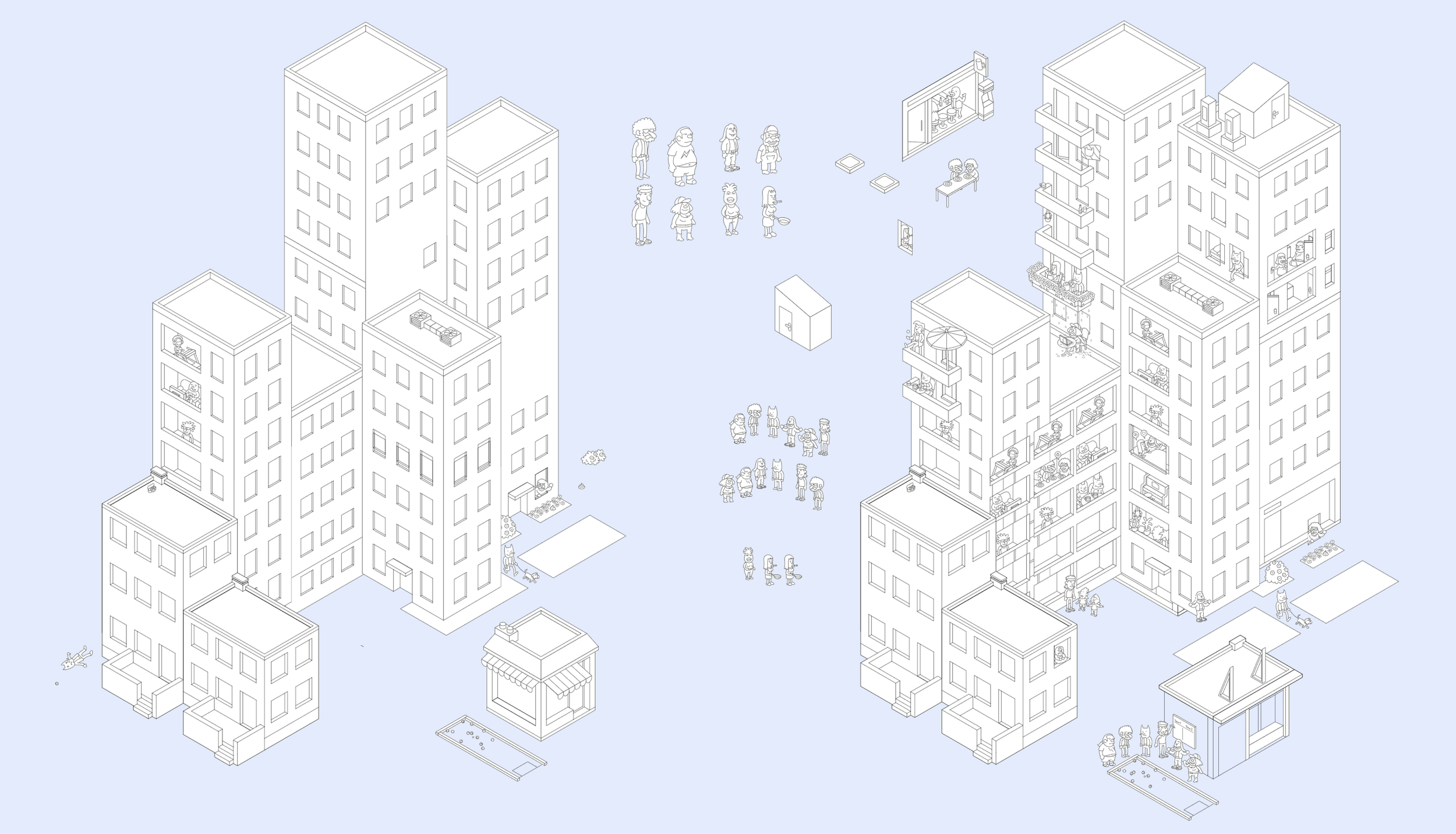 MicroMacro combines game mechanics, storytelling, and urban planning. How did you turn this first prototype into an entire city?