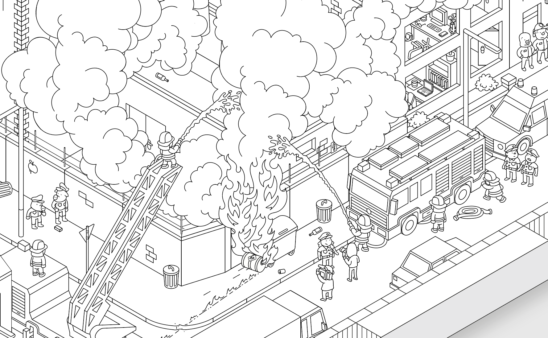 The whole game of MicroMacro is set in a single illustration of one city, where everything is connected. What were the challenges in creating a prototype for this concept?