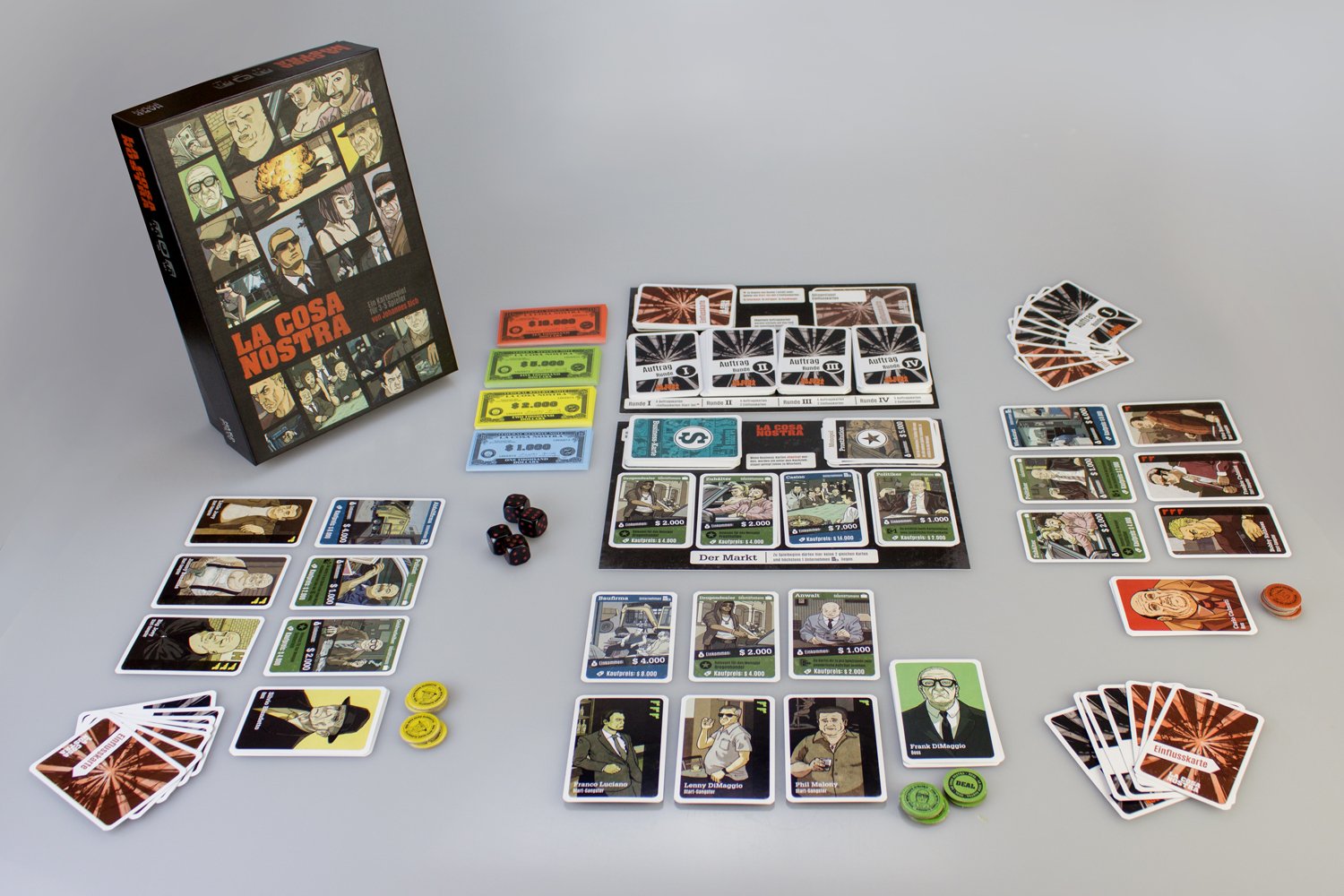 During our time at university, we were already interested in creating games. When choosing a project for my diploma, I came up with La Cosa Nostra, a card game with a mafia theme and a strong focus on player interaction and negotiation. Initially, it was merely an excuse to create a bunch of badass gangster characters, and for my diploma, only the visual design mattered.